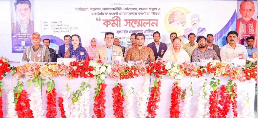 হেযবুত তওহীদের এমাম হোসাইন মোহাম্মদ সেলিম বলেছেন, মাতৃভূমি বাংলাদেশকে বাঁচাতে হলে উগ্রবাদী ধর্মব্যবসায়ীদের বিরুদ্ধে দুর্বার গণআন্দোলন গড়ে তুলতে হবে। এসময় তিনি কর্মীদের এ ব্যাপারে মানসিক, শারীরিক ও আধ্যাত্মিকভাবে প্রস্তুতি গ্রহণের আহ্বান জানিয়েছেন। গতকাল নীলফামারীর সৈয়দপুরে জি. আর. পি পুলিশ ক্লাবে এক বিশাল কর্মী সমাবেশে প্রধান অতিথির বক্তব্যকালে তিনি এ আহ্বান জানান।