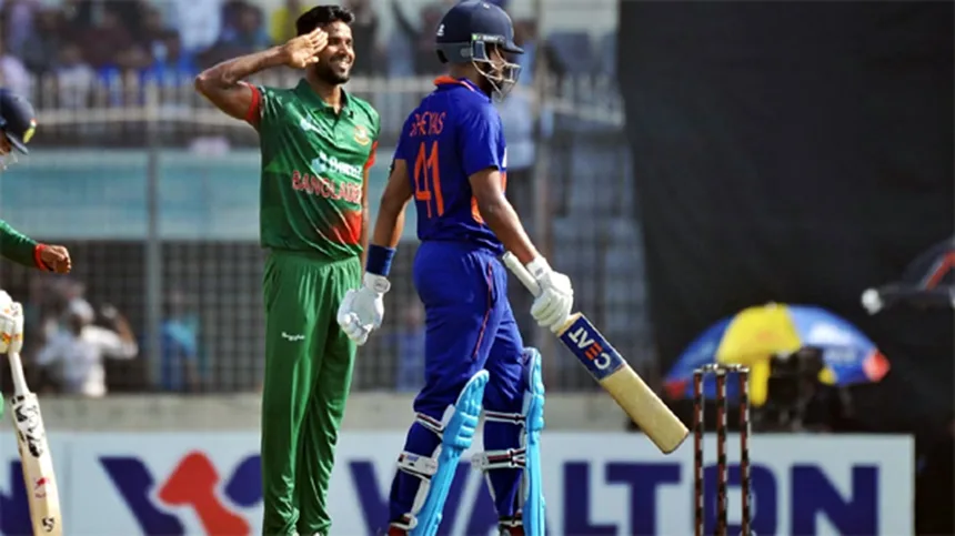 রোহিত শর্মা ইনজুরিতে পড়ায় এদিন ইনিংস উদ্বোধনে আসেন লোকেশ রাহুল ও বিরাট কোহলি। প্রথম বলেই চার হাঁকান কোহলি। দ্বিতীয় ওভারের পঞ্চম বলে এসে তাকে সাজঘরে ফেরত পাঠান এবাদত।
