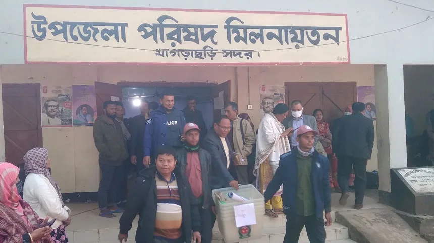 খাগড়াছড়ির জেলা প্রশাসক ও রিটার্নিং কর্মকর্তা মো. সহিদুজ্জামান জানান, জেলার তিনটি দুর্গম ভোটকেন্দ্রে হেলিকপ্টার যোগে ভোটের সকল সরঞ্জাম এবং জনবল পৌঁছে দেওয়া হয়েছে। শনিবার দুপুরে ৯৮টি কেন্দ্রে নির্বাচন সংশ্লিষ্ট কর্মকর্তা এবং ভোটগ্রহণের সকল সরঞ্জাম পাঠানো হয়েছে। এছাড়া কাছাকাছি বাকি কেন্দ্রগুলোতে সকল সরঞ্জাম পাঠানো হলেও রোববার সকালে পাঠানো হবে ব্যালট পেপার।