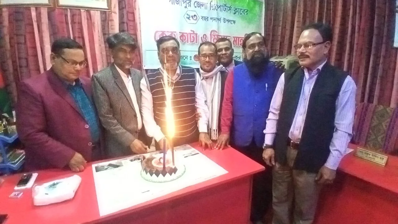 ঐতিহ্যবাহী গাজীপুর জেলা রিপোর্টার্স ক্লাবের ২৩ বৎসর পদার্পণ উপলক্ষে জেলা রিপোর্টার্স ক্লাব কার্যালয়ে ক্লাবের সদস্যদের নিয়ে আলোচনা সভা ও কেক কেটে উদযাপন করা হয়।
