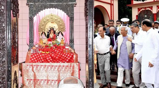 প্রধান উপদেষ্টার প্রেস উইং জানিয়েছে, ড. মুহাম্মদ ইউনূস বাংলাদেশের সনাতন ধর্মাবলম্বীদের বৃহত্তম ধর্মীয় উৎসব দুর্গাপূজা উপলক্ষ্যে ঢাকেশ্বরী জাতীয় মন্দির পরিদর্শন করেন এবং সেখানে হিন্দু সম্প্রদায়ের সদস্যদের সঙ্গে শুভেচ্ছা বিনিময় করেন।