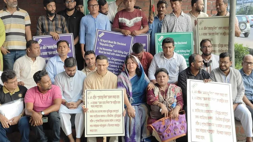 সোহেল তাজের দাবিগুলো হলো ১৯৭১ সালের ১০ এপ্রিল স্বাধীনতার ঘোষণাপত্রের মাধ্যমে গণপ্রজাতন্ত্রী বাংলাদেশের প্রথম সরকার গঠিত হওয়ায় ওই দিনকে ‘প্রজাতন্ত্র দিবস’ ঘোষণা করা; ৩ নভেম্বর জেল হত্যা দিবসকে রাষ্ট্রীয়ভাবে পালন করা এবং জাতীয় চার নেতাসহ মহান মুক্তিযুদ্ধের সব বেসামরিক ও সামরিক সংগঠক, পরিচালক, শহীদ ও বীর মুক্তিযোদ্ধাদের নাম, অবদান ও জীবনীসহ মুক্তিযুদ্ধের সঠিক ও পূর্ণাঙ্গ ইতিহাস যথাযথ মর্যাদা ও গুরুত্বের সঙ্গে সর্বস্তরের পাঠ্যপুস্তকে ও সিলেবাসে অন্তর্ভুক্ত করা।