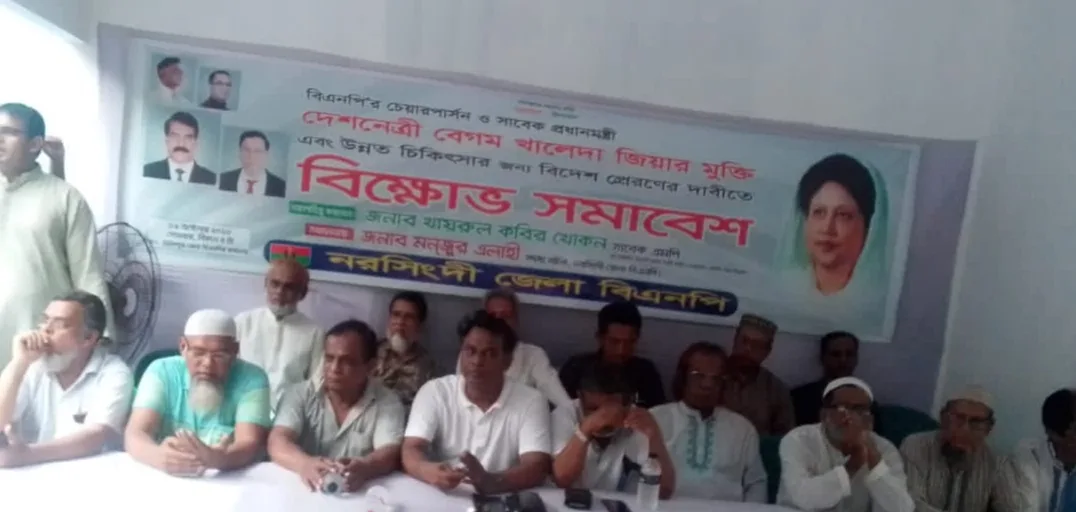 নরসিংদীতে খালেদা জিয়াকে বিদেশ প্রেরণের দাবিতে বিক্ষোভ