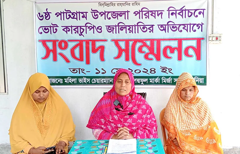 লালমনিরহাটের পাটগ্রাম উপজেলা পরিষদ নির্বাচনে কারচুপি ও জালিয়াতির অভিযোগ করে সংবাদ সম্মেলন করেছেন মহিলা ভাইস চেয়ারম্যান প্রার্থী উপজেলা যুব মহিলা লীগের সভাপতি মির্জা সাইরী তানিয়া।