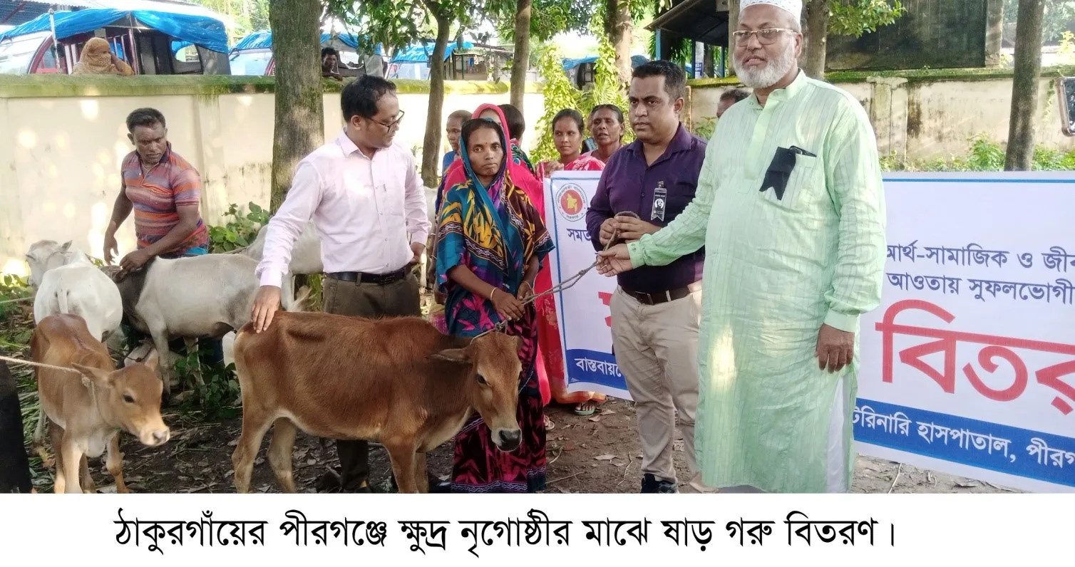 প্রাণীসম্পদ মন্ত্রনালয়ের অর্থায়নে গত বৃহস্পতিবার বৈকালে ঠাকুরগাঁয়ের পীরগঞ্জে উপজেলা প্রাণীসম্পদ দপ্তর ও ভেটেনারী হাসপাতালের মাধ্যমে ২২ জন সুফল ভোগীদের মাঝে ষাড় গরু বিতরণ করা হয়।