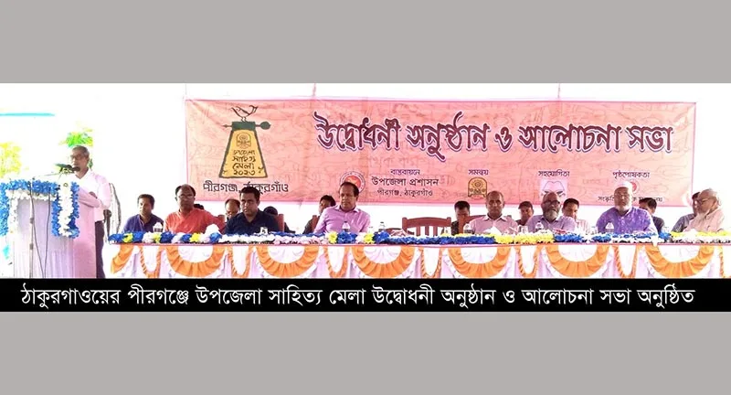 ঠাকুরগাওয়ের পীরগঞ্জে উপজেলা সাহিত্য মেলা উদ্বোধনী অনুষ্ঠান ও আলোচনা সভা অনুষ্ঠিত হয়। বৃহস্পতিবার সকাল ১১টায় উপজেলা প্রশাসন এর ব্যবস্থাপনায় পীরগঞ্জ পাইলট উচ্চ বিদ্যালয় চত্ত্বরে বাংলা একাডেমির সমন্বয় ও জাতীয় গ্রন্থ্যকেন্দ্রের সহযোগীতায় দুই দিন ব্যাপি উপজেলা সাহিত্য মেলা ও বই মেলা ২০২৩ অনুষ্ঠানের আয়োজন করা হয়। ঠাকুরগাও জেলা প্রশাসক মোঃ মাহবুবুর রহমানের সভাপতিত্বে আয়োজিত অনুষ্ঠানে বক্তব্য রাখেন মোঃ আতাউর রহমান যুগ্ন সচিব সাংস্কৃতিক বিষয়ক মন্ত্রনালয়, অধ্যাপক ইসরাফিল শাহিন নাট্যকলা ও সংগীত বিভাগ ঢাকা বিশ্ববিদ্যালয়, প্রফেসর মোঃ আব্দুল জলিল অধ্যক্ষ ঠাকুরগাও সরকারি কলেজ, প্রফেসর মোঃ আব্দুল মতিন অধ্যক্ষ পীরগঞ্জ সরকারি কলেজ, পীরগঞ্জ উপজেলা পরিষদ চেয়ারম্যান মোঃ আখতারুল ইসলাম, উপজেলা নির্বাহী অফিসার শাহরিয়ার নজির, উপজেলা আওয়ামী লীগের সাধারণ সম্পাদক রেজওয়ানুল হক বিপ্লব প্রমুখ। সাহিত্য মেলা ও বই মেলায় লেখক সহ কর্মশালা, বিভিন্ন বইয়ের স্টল এবং সাংস্কৃতিক অনুষ্ঠানের আয়োজন করা হয়েছে।