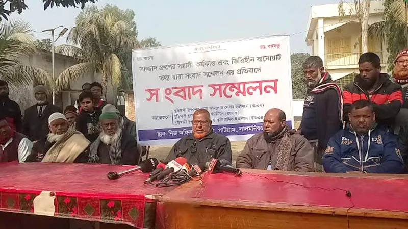 লালমনিরহাট জেলাধীন পাটগ্রাম উপজেলায় বুড়িমারী স্থলবন্দর শ্রমিক লীগের সভাপতি সাজ্জাদ হোসেন এর সন্ত্রাসী কর্মকান্ড ও ভিত্তিহীন বানোয়াট তথ্য দিয়ে সংবাদ সম্মেলন এর প্রতিবাদে সংবাদ সম্মেনে করেছে বুড়িমারী স্থল বন্দর লোড আনলোড লেবার ইউনিয়ন, বুড়িমারী স্থল বন্দর শ্রমিক ইউনিয়ন, বুড়িমারী স্থল বন্দর স্টেশন ও কুলি শ্রমিক ইউনিয়ন এর সকল শ্রমিক ও সরদারগণ। বৃহস্পতিবার বিকেলে এই সংবাদ সম্মেলন করা হয়। সংবাদ সম্মেলনে লিখিত বক্তব্য পাঠ করেন বুড়িমারী স্থল বন্দর লোড আনলোড লেবার ইউনিয়নের সাধারণ সম্পাদক মো. হামিদুল ইসলাম।