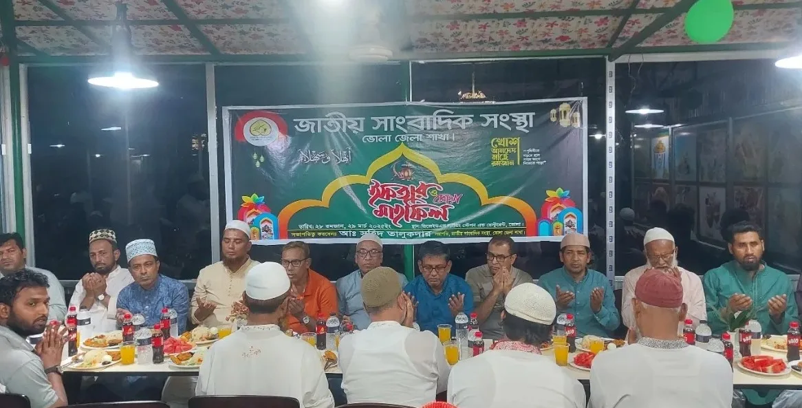 পবিত্র রমজান উপলক্ষে ভোলায় জাতীয় সাংবাদিক সংস্থার আয়োজনে ইফতার ও দোয়া মাহফিল অনুষ্ঠিত হয়েছে। সন্ধ্যায় শহরের ভোলা হাসপাতাল রোডে অবস্থিত জিজিইউএস ল্যান্ডিং স্টেশন ও রেস্টুরেন্টে এ অনুষ্ঠানের আয়োজন করা হয়।