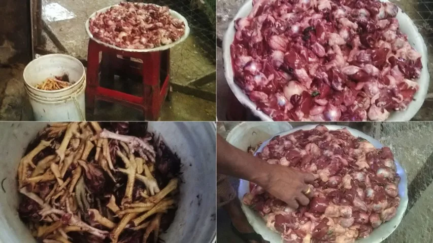 দোকান থেকে যেসব ক্রেতা মুরগি কিনে কেটে নিয়ে এসব পা মাথা, গিলা কলিজাগুলো নেন না সেগুলোই মূলত একত্রিত করে পরে অন্য সাধারণ ক্রেতাদের কাছে মুরগির চেয়ে কম দামে বিক্রি করা হয়। যারা দাম বেশির কারণে আস্ত মুরগি কিনতে  পারেন না, তারাই মূলত এগুলো কেজি দরে কিনে নেন। বাজারে এসব গিলা কলিজা, পা,  মাথা এক সঙ্গে প্রতি কেজি বিক্রি হচ্ছে ১২০ টাকা করে। আর যদি কেউ শুধু গিলা কলিজা কিনতে চান সেক্ষেত্রে কিনতে হবে ১৫০ টাকা কেজিতে। অন্যদিকে শুধু পা আর মাথা মিলিয়ে বিক্রি হচ্ছে প্রতি কেজি ৮০ টাকায়।