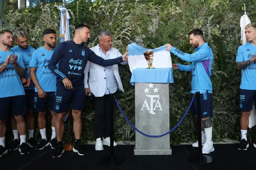 এজিজাতে আনুষ্ঠানিকভাবে ব্রোঞ্জের নামফলক উন্মোচন করেন এএফএ সভাপতি ক্লদিও তাপিয়া, প্রধান কোচ লিওনেল স্কালোনি ও লিওনেল মেসি নিজেই। এরপর নিজেদের ভেরিফায়েড টুইটারে বিষয়টি জানিয়েছেন তাপিয়া।