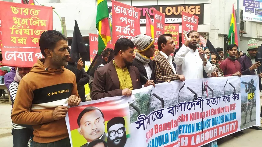 বাংলাদেশ-ভারত সীমান্তে সম্প্রতি বিএসএফ-এর গুলিতে বিজিবি সদস্য হত্যার ঘটনার প্রতিবাদে রাজধানীতে বিক্ষোভ সমাবেশ অনুষ্ঠিত হয়েছে। আজ বৃহস্পতিবার (২৫ জানুয়ারি) জাতীয় প্রেস ক্লাবের সামনে বিক্ষোভ সমাবেশের আয়োজন করে বাংলাদেশ লেবার পার্টি।