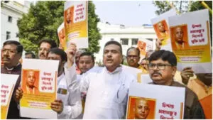 কলকাতায় বাংলাদেশ উপ-হাইকমিশনের সামনে বিজেপির বিক্ষোভ সম্মিলিত সনাতনী জাগরণ জোটের মুখপাত্র ও পুণ্ডরীক ধামের অধ্যক্ষ চিন্ময় কৃষ্ণ দাস ব্রহ্মচারীকে গ্রেপ্তারের প্রতিবাদ এবং মুক্তির দাবিতে… ২৭ নভেম্বর ২০২৪